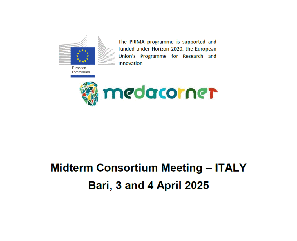 The MEDACORNET project’s mid-term consortium meeting and awareness event was held in a hybrid format on 3–4 April 2025 in Bari, Italy, hosted by project partner Università degli Studi di Bari Aldo Moro. The first day was reserved exclusively for project partners, while the second day featured sessions open to the public.